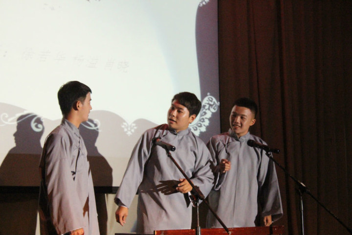 此外,还有动感的三人街舞,经典歌曲的串烧,帅气的吉他弹唱,吟诗作对的高端黑相声《吉祥人间》,配音剧《平田的世界》和正能量满满的朗诵《中国人,不跪的人》。最后,晚会在四班全体同学带来的歌曲串烧《星空红日当当当》中落下了帷幕。