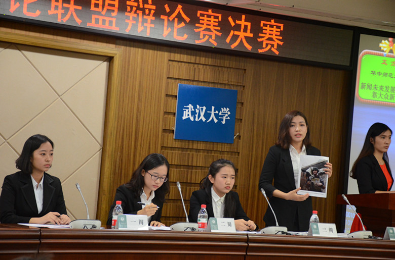 这次冠军之战,yl9193永利新闻院代表队由张丽婧、刘笑仪、柯佳丽、江慧欣组成,就“新闻未来发展主要依靠大众新闻还是专业新闻”与华师代表队展开辩论。本场比赛邀请的评委有中南财大的闫伟、中国地大(武汉)的熊程、中南民族大学的李燮旻、华中科技大学的廖锡宁、及中南财大的龙册杨。反方——武大新闻院代表队以4:1摘得冠军,江慧欣成为本场最佳辩手。