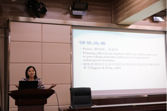 最后上场的是广播电视系的闫岩老师。她授课的重点是铺垫理论,一上场便以幽默风趣的援引举例,“我说糖是甜的,那么醋就是酸的”等,让在场的老师对记忆网络模式、大脑信息处理的基本原则建立起了最初的概念。然后,她对语义铺垫的干扰任务实验做了详细的分析,而实验结果受邻近性的影响。同时举出数据,说出海湾战争前后,人们对总统评价的标准的变化。