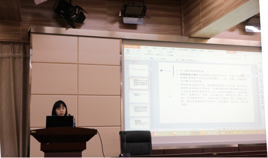 接着,网络传播系的杨嫚老师以网络新闻的专题策划为题进行授课。她谈到,当今社会信息的过载与重复,让记者和媒体的中间商角色显得尤为重要。专题化是对重大新闻事件的一个整体把握,杨嫚接着展示了新浪新闻、腾讯新闻的专题汇总首页。接着对马航失事专题进行分析,并讲述了川字形的网络老布局的利弊。最后她以一个问题收尾,希望同学们能够探索网络专题的原创性、创新型模式。