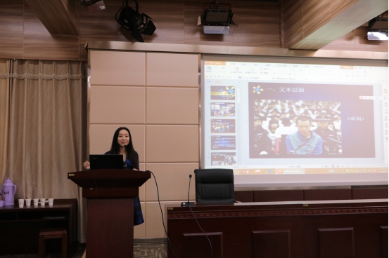 第二个上场的是新闻系的张瓅尹老师,她以特稿《审判》作为剖析蓝本,阐述了特稿的文学价值及社会价值。张瓅尹说,在文学层面上,特稿的文学手法强调意境化和小说化,《审判》一文则布满悬念,引人入胜。再者,一篇好的特稿更需要能在社会层面上以小见大,引导思考。药家鑫案中的媒介审判,则是当今新闻界仍然需要反思的议题。好的特稿有着对于真相的渴求,她最后谈到,特稿是好看的真相和真实的真相结合,同学们要擅长捕捉生活里的小说。