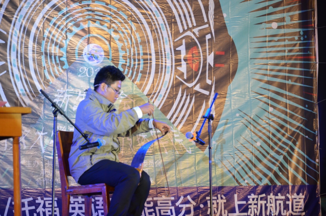 接下来是由播班新生王霆威和张琦带来的武大“选秀”《武大好员工》。在导师“王后熊”和观众的注视下,王霆威一人分饰多位“选手”,拉完深情的小提琴后,又和选秀“主持”张琦演绎了一段令人惊叹的“山东快板”,熟练的台词引来阵阵喝彩,最后,“农民”王霆威展示独门绝技,用锯子拉出一曲《好运来》,不少观众惊呼“请收下我的膝盖”。