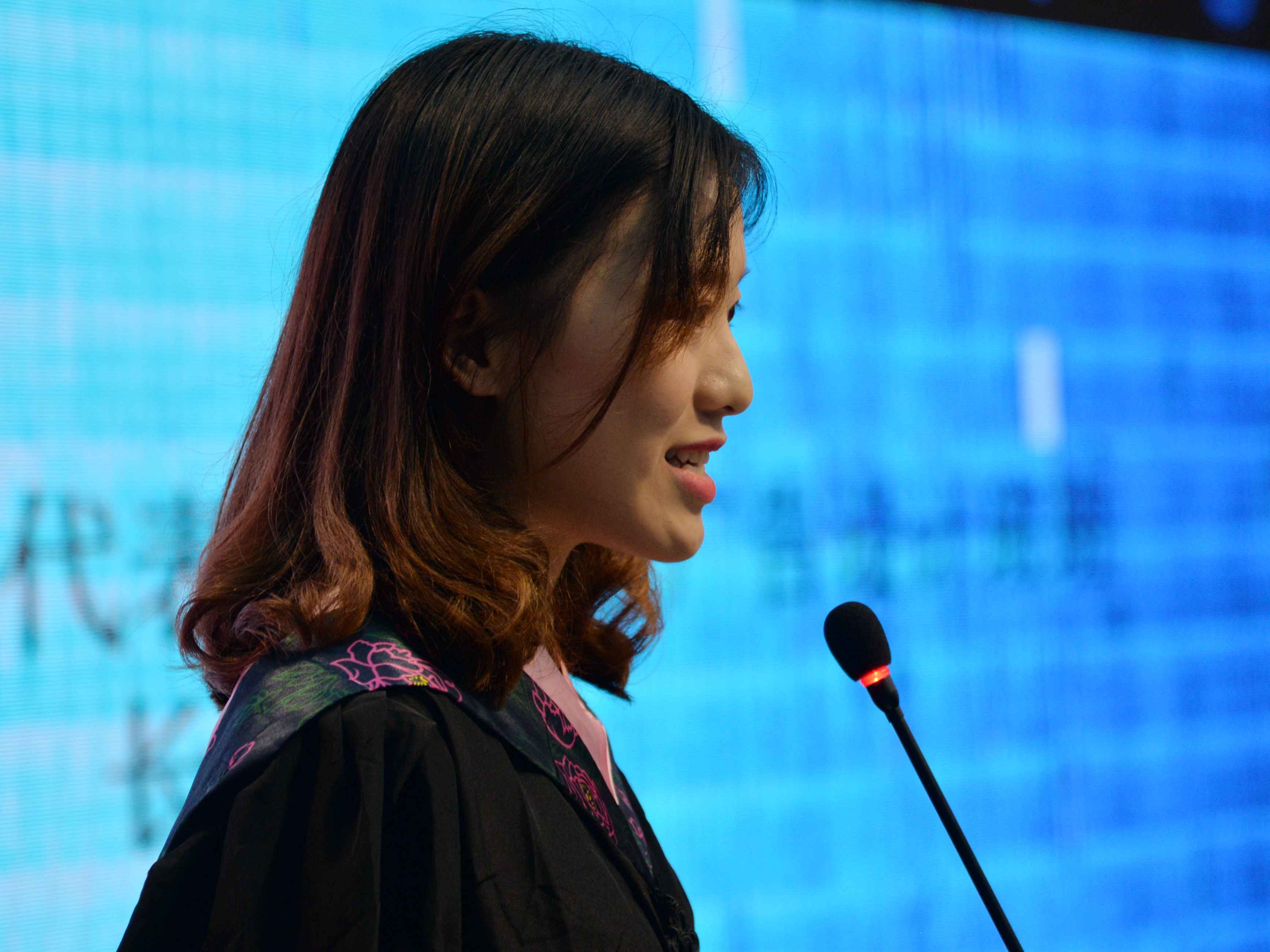 员工代表、纪录片导演、新闻院95级广播电视新闻学专业毕业生范俭在发言时,表达了希望毕业们能够开拓眼界、拥有国际视野的期望。在自身发展的同时,也考虑媒介的发展趋势。
