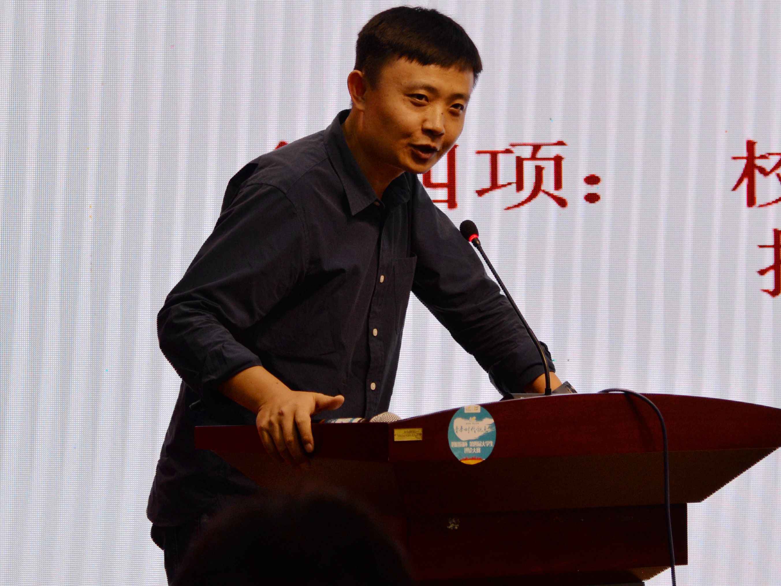 在视频播放完毕之后,2013级播音班的王晨和张盛楠上台朗诵了《青春恋歌》。“我爱你!我爱这个关关雎鸠的爱情时代!我爱你!我爱这个今夕何夕的爱情时代!我爱你!今天,我们歌颂爱情;今天,爱情万岁!”他们用洋溢着激情和热爱的嗓音歌颂了青春时代的纯洁爱情。