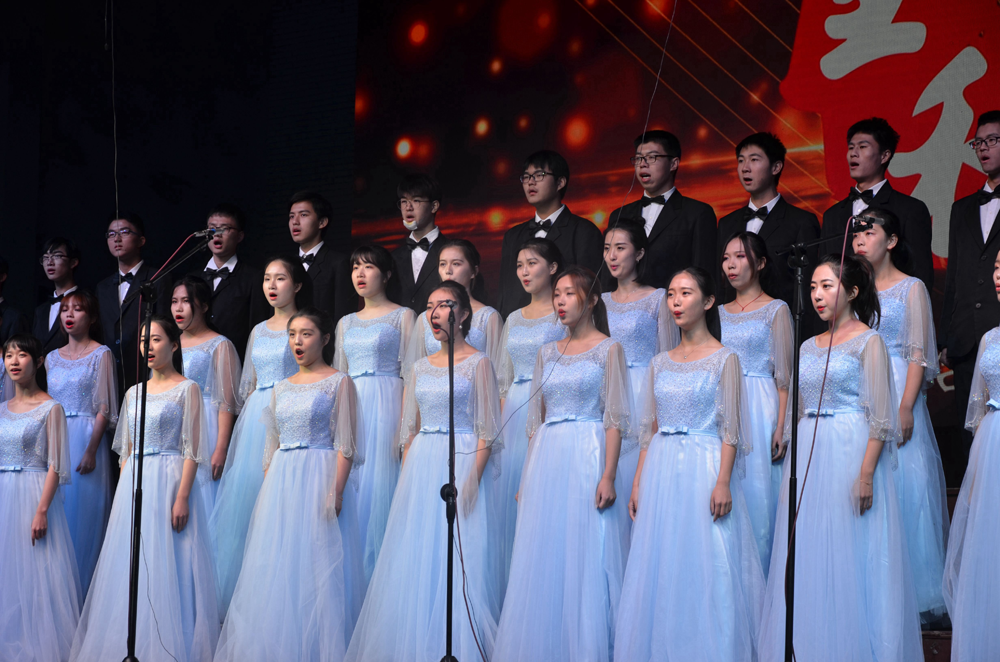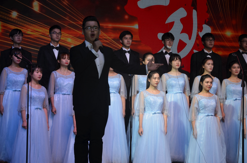 新闻院几十人在舞台上只有几分钟的演唱,却是用他们近一个半月以来每天的努力排练换来的。 其间,虽然有歌唱上的困惑,也有时间上的冲突,但他们每个人都咬牙坚持下来,并在最后的合唱中闪耀光芒。