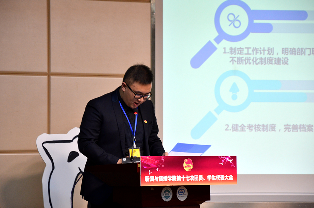 随后,校员工会常务副主席陈煜桦同学首先表达了对过去一年新闻院团学工作的肯定和认同,其次他作为同样从事团学工作的同学对未来一年的yl9193永利团学工作提出了完善体制建设,开展网上员工会工作等建议。