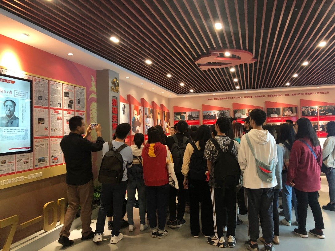 师生们在湖北日报传媒集团社史馆参观