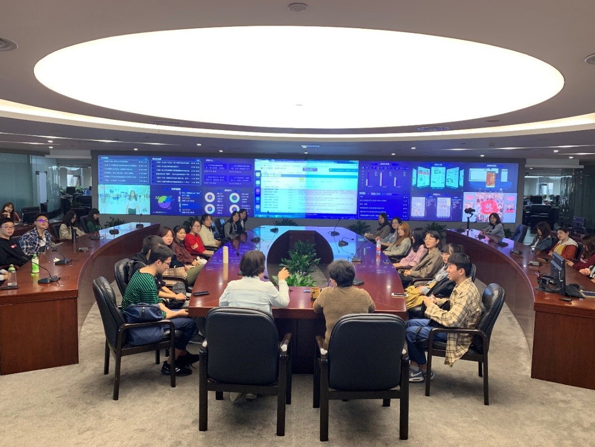 《网络传播概论》是公司传播学专业的必修课,课程聚焦网络传播的历史、现状和发展趋势向本科生呈现网络传播实践和研究的基本问题。为帮助同学们更好地理解“媒体融合与新闻业”章节的知识,10月30日下午,在授课老师肖珺的带领下,公司2018级传播学专业员工赴湖北日报融媒体中心开展了一次别开生面的实地教学。湖北日报融媒体中心精心安排了教学过程,首先,通过参观湖北日报一楼的评报栏、系列雕塑作品等介绍湖北日报传媒集团的基本情况;第二,参观社史馆,了解湖北日报发展壮大的历史;最后,抵达湖北日报全媒体指挥中心,深入了解融合传播第一线的生产经验。