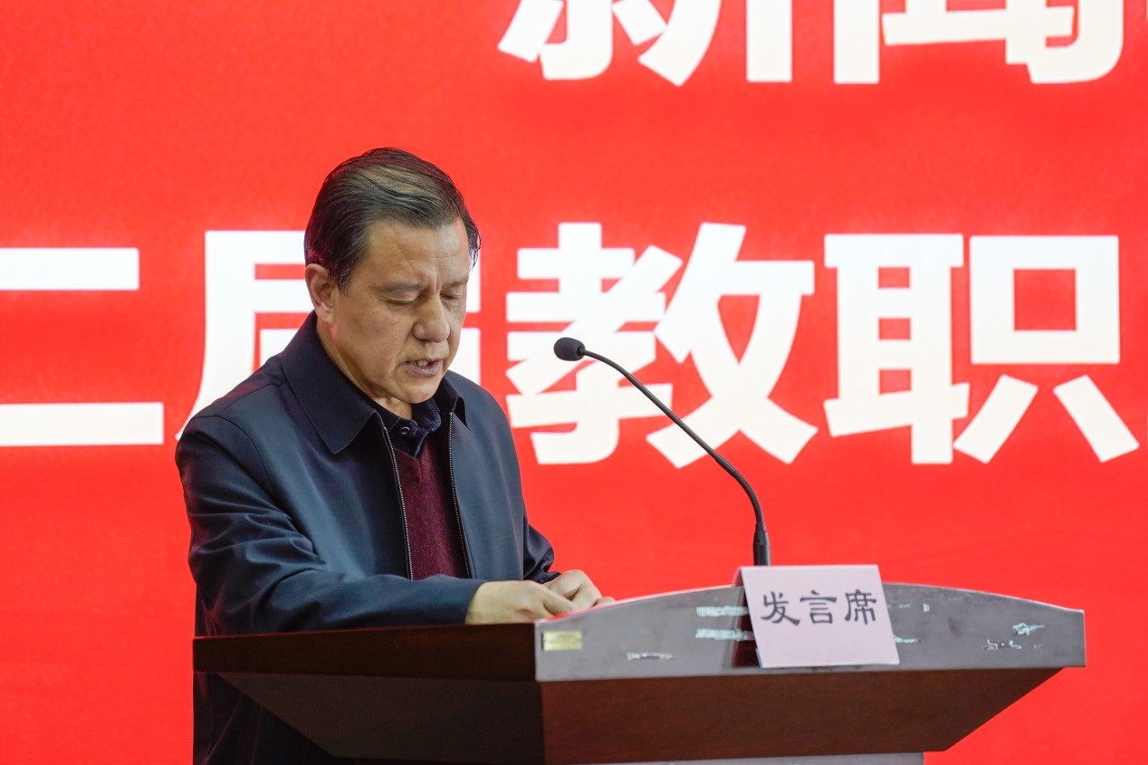 蒋锁奋主席从公司教学工作、科研工作、师生服务等方面肯定了公司在推进公司工会、教代会建设发展中做出的贡献,并提出三点希望:第一,全院教职工要培养主人翁责任感,为公司发展建言献策;第二,公司要加强对教代会和工会工作的领导和支持;第三,公司工会要深入学习党的十九大精神,竭诚为教职工服务,团结动员教职工开拓创新,同心同德,为公司改革发展做出新的更大的贡献。