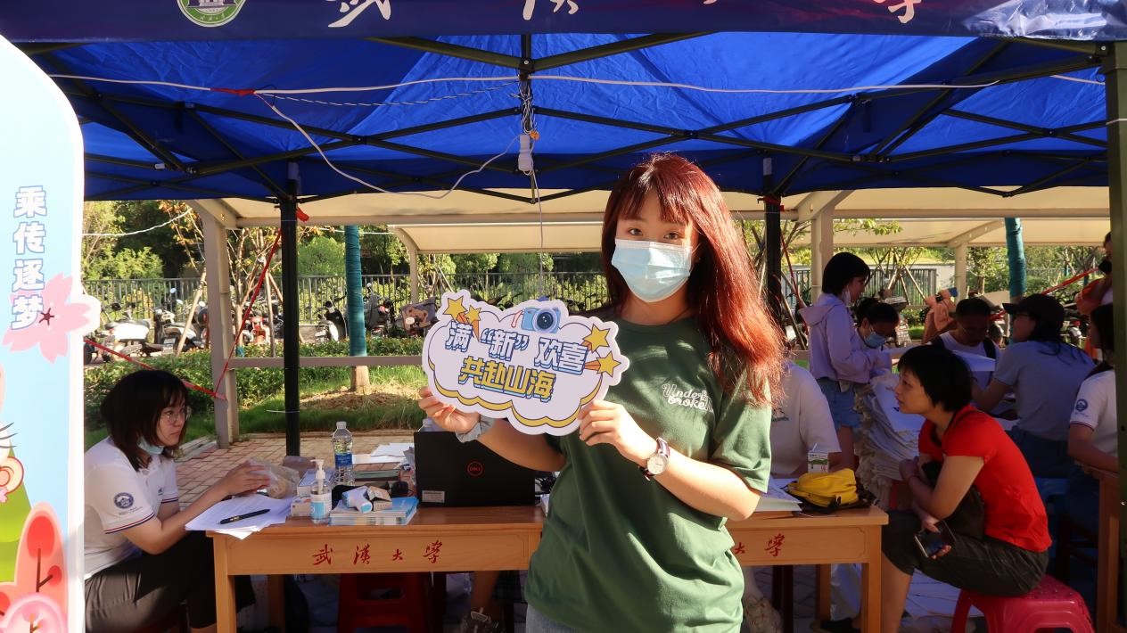 报到流程结束后,新生们在现场布置的手持牌、合影墙前拍照留念。在镜头前,他们笑容洋溢,留下自己在珞珈山的第一张青春剪影。