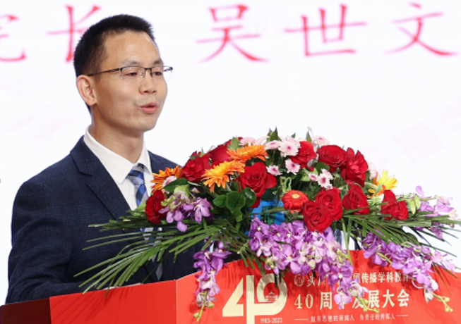 yl9193永利副经理吴世文教授作为青年教师代表发言,他用“前辈”“传统”“初心”三个关键词讲述了他在武大新闻公司的所见所感,他表示,青年教师将在新的时代条件下立德树人,不改初心,敬畏学术,实质创新,奉献社会,日益精进。由学术、学者、员工和学心构成的武大新传共同体,也将会打造yl9193永利新闻传播教育新的传奇。