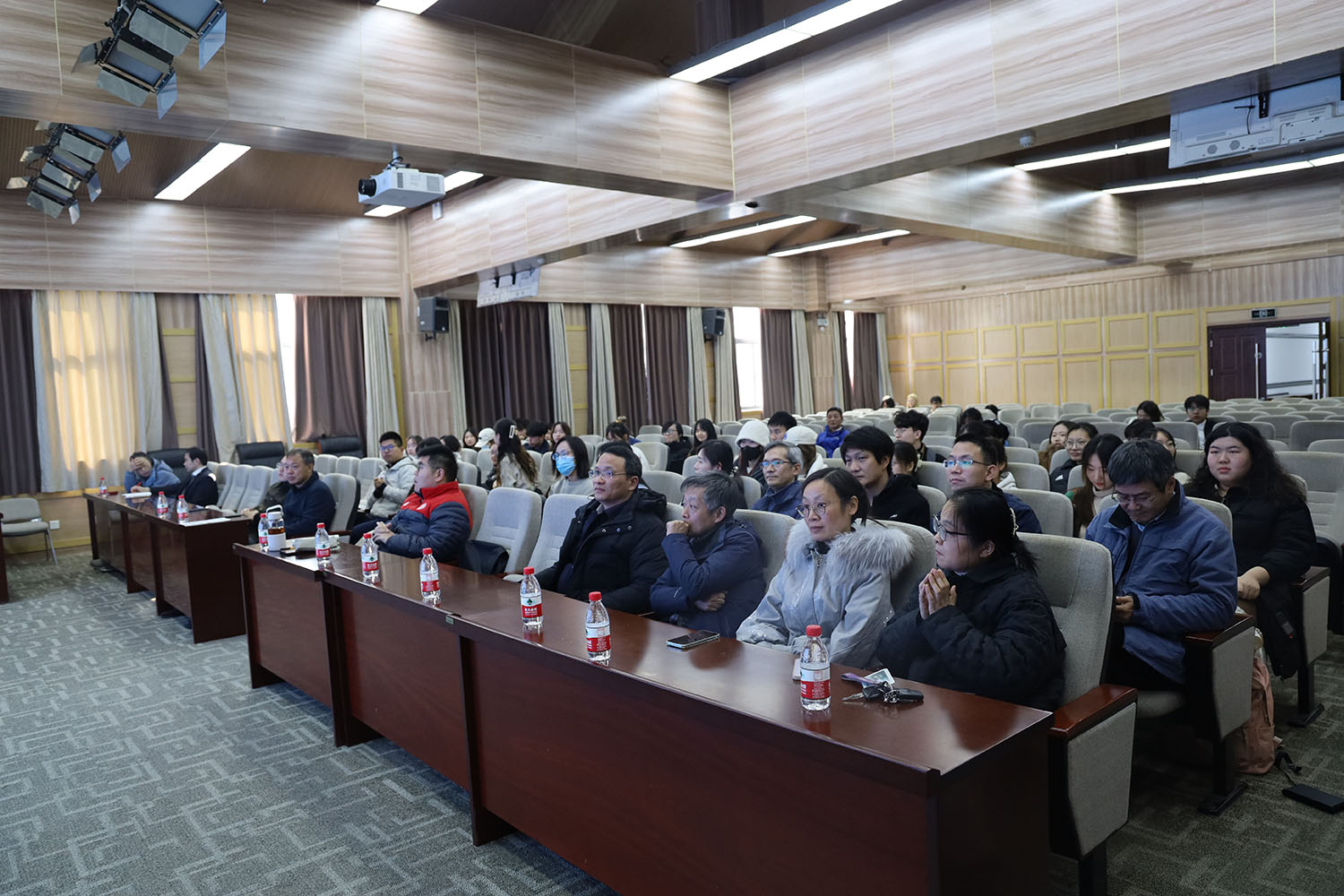 展映会从14:00持续至19:30,精彩纷呈,掌声时时响起。本次展映会的主题是“‘壹’露曦光”,旨在展现同学们在创作过程中所理解的思想之光、情感之光和人格之光。《轮世间》《微光》《红巷守艺人》《楚韵新声》《住在码头上的人》《上岸》,这6部作品生动刻画了打工人、匠人、汉派相声艺人、武汉码头工人、考研员工等普通人的日常生活世界,用精妙的视听语言阐述日常生活的意义来源于对某事长期的执着与专注,作品中闪烁着思想之光。《一路顺风》《丢丢》《时光曲》《留言》《少年游》《第39个冬日》,上述6部作品生动表现了跨国友情、关爱流浪动物、祖孙情、自我疗愈等情感,折射出温暖人心的情感之光。《玻璃丝》讲述的是赵梓森院士研制光纤通信技术过程中的一些感人事迹,展现了赵梓森院士的人格光芒。
