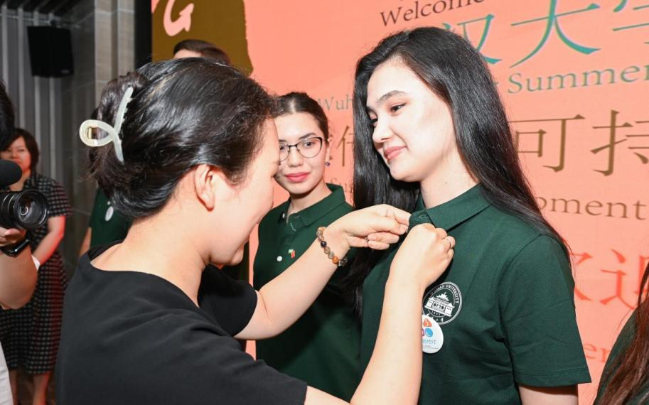 最后,志愿者们同中外教师与专家代表共同为暑期公司的新生代“文化使者”郑重佩戴上了象征着友谊的国家友好徽章和纪念徽章。一枚枚闪亮的徽章如同跨越大陆的和平纽带,将各国师生的心紧密相连。