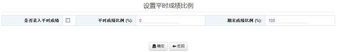 2、第一次给某个教学班录入成绩时,单击“成绩录入”链接,首先设置“是否录入平时成绩”,如果选中该复选框,表示会录入平时成绩及期末成绩,此时应设置平时成绩比例(期末成绩比例随之生成),如图二所示,系统将根据录入的平时成绩、期末成绩及相应比例,自动计算总评成绩;如果不选中该复选框,表示总评成绩采用手动方式直接录入。