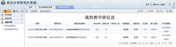 (6)对于一个教学班有多位任课教师的情况,第一位单击“成绩录入”链接的任课教师具有该教学班的成绩录入权限,其他任课教师仅有成绩查看权限。