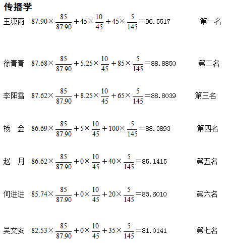 根据公司本科生院有关文件精神,经公司推免工作小组审核,现将各专业排名情况通报如下: